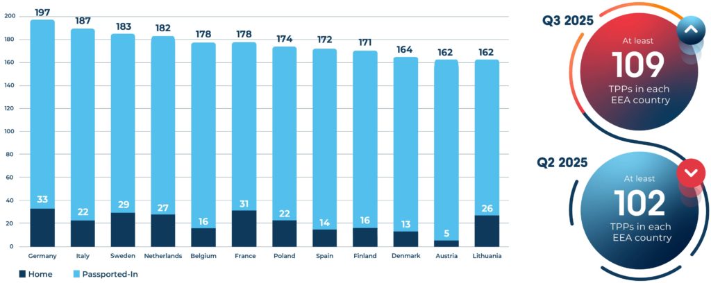 of EEA countries now exceed 150 authorised TPPs, a sharp rise from 43% at the end of Q2