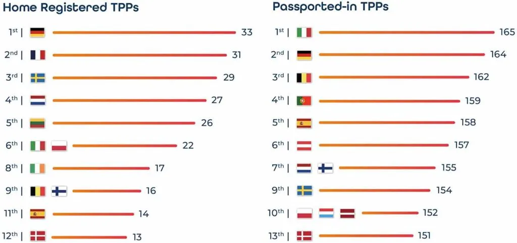 - Germany continues to have the highest number of home-regulated TPPs (33), despite one withdrawal during the quarter. France and Sweden follow closely with 31 and 29, respectively.